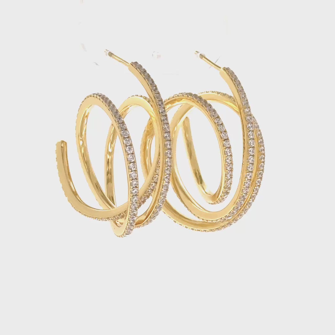 Złote Spirale Blasku: Kolczyki Spirale, Srebro 925, Pozłacane 18k, Cyrkonie Pavé, Vivagem Selection