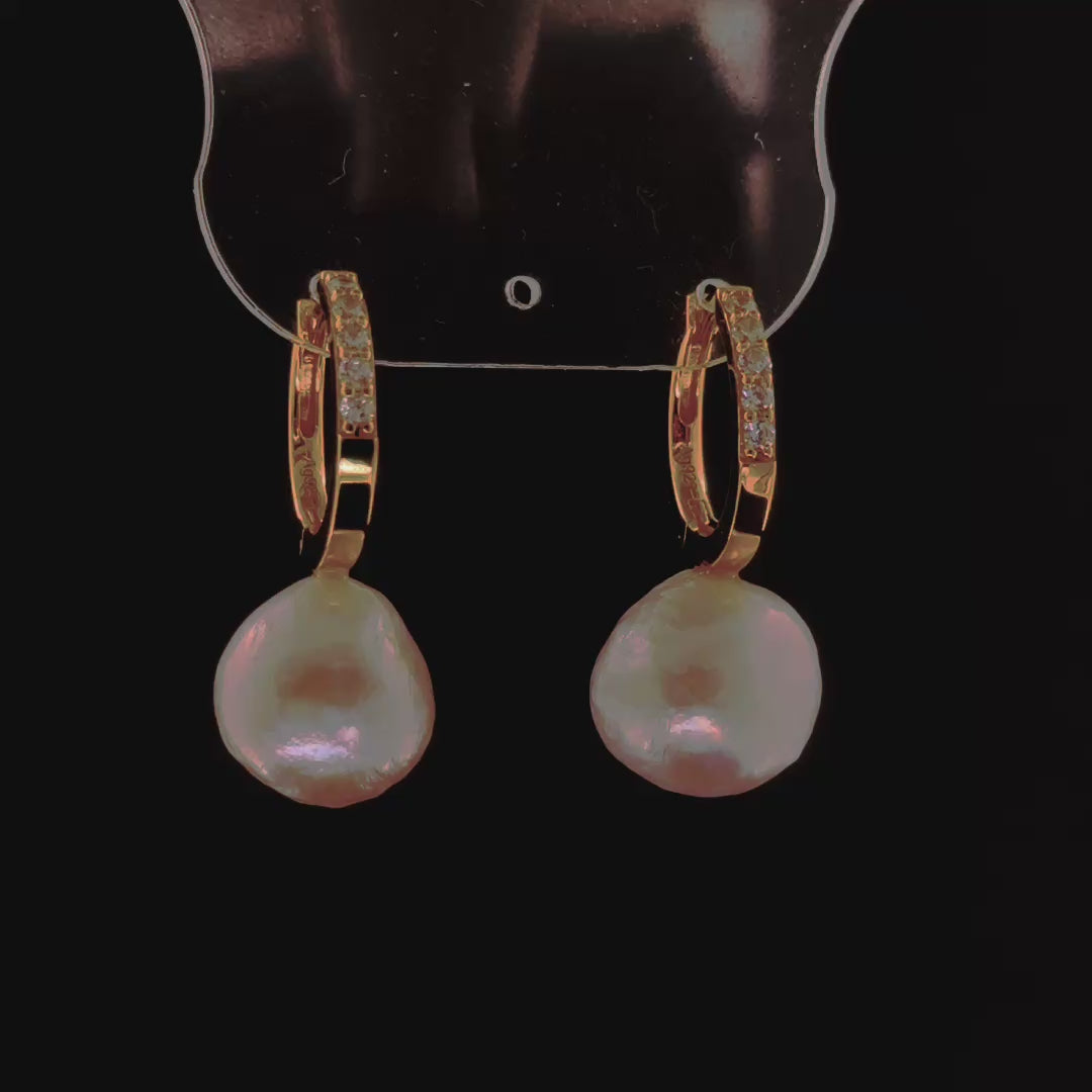 Eleganckie Pozłacane Kolczyki Koła z Perłą Barokową i Cyrkoniami, Srebro 925, 18k Złoto, Vivagem Selection